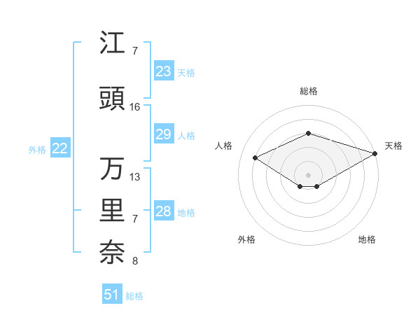 江頭 万里奈さんを姓名の画数から五運を鑑定