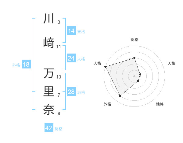 川﨑 万里奈さんの外格は18画の4点