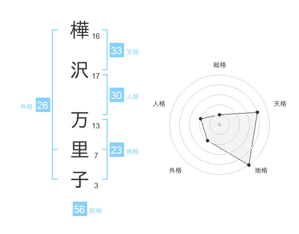 樺沢 万里子さんを姓名の画数から五運を鑑定