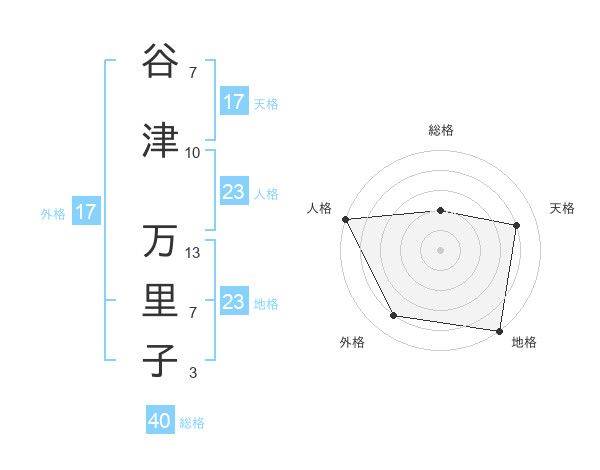 谷津 万里子さんを姓名の画数から五運を鑑定