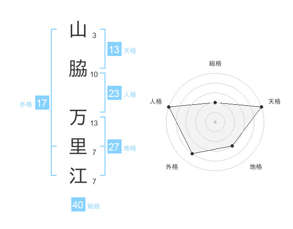 山脇 万里江さんを姓名の画数から五運を鑑定
