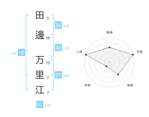 田邊 万里江さんを姓名の画数から五運を鑑定