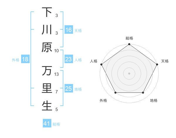 下川原 万里生さんの総格は41画の5点!