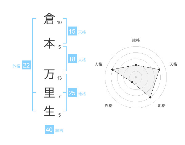 倉本 万里生さんを姓名の画数から五運を鑑定