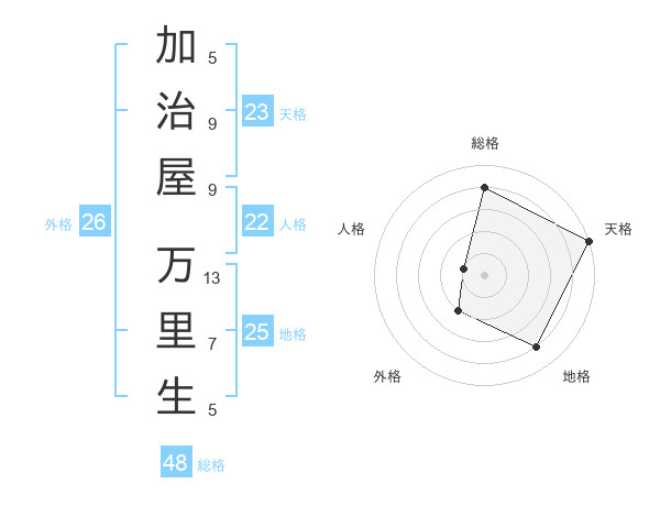 加治屋 万里生さんの天格は23画の5点
