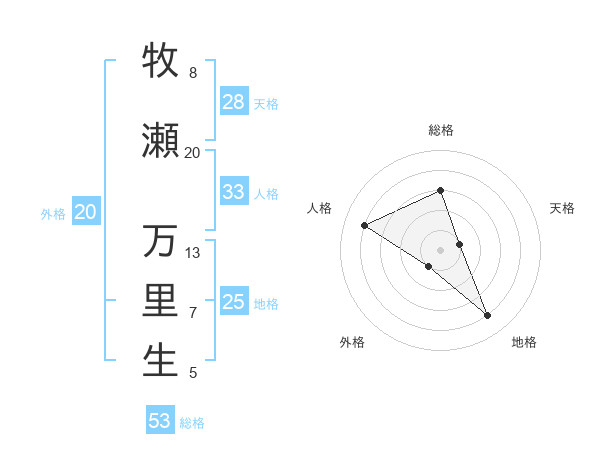牧瀬 万里生さんを姓名の画数から五運を鑑定