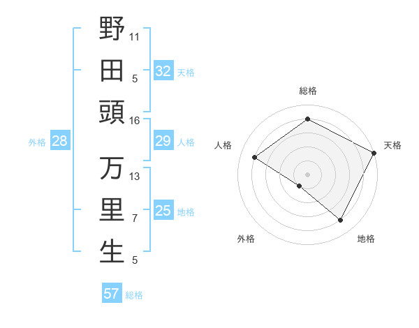 野田頭 万里生さんの天格は32画の5点!
