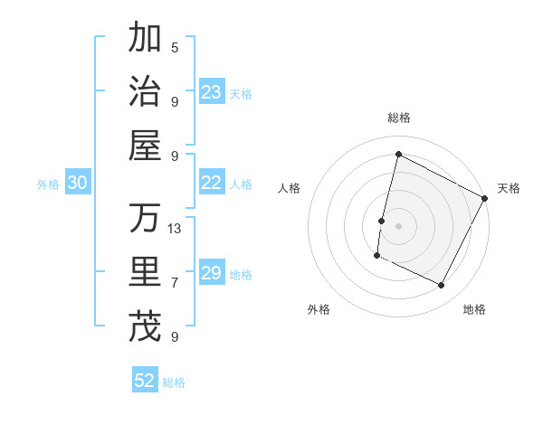 加治屋 万里茂さんの総格は52画の4点!