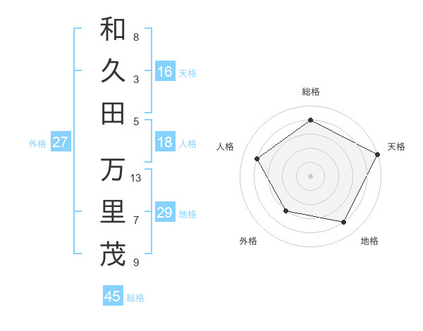 和久田 万里茂さんの総格は45画の4点!