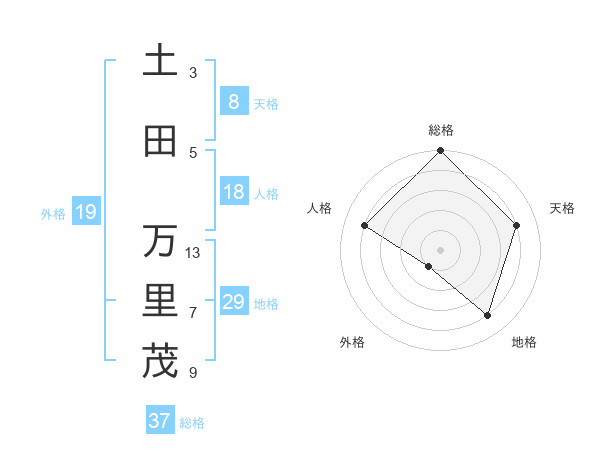 土田 万里茂さんを姓名の画数から五運を鑑定