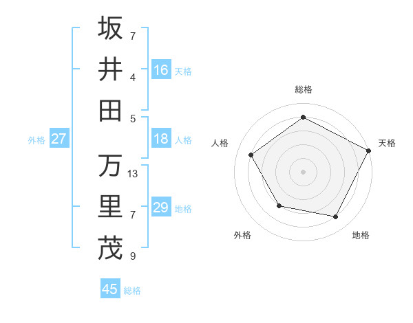 坂井田 万里茂さんを姓名の画数から五運を鑑定