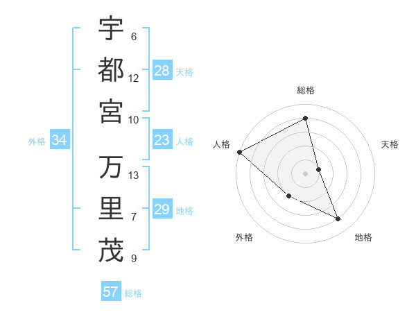 宇都宮 万里茂さんの総格は57画の4点!