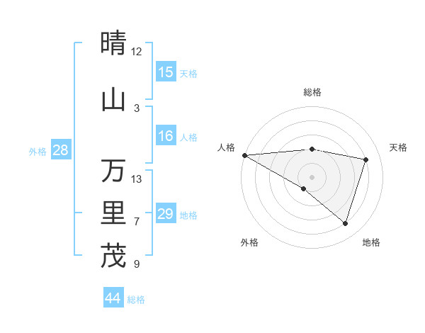 晴山 万里茂さんを姓名の画数から五運を鑑定