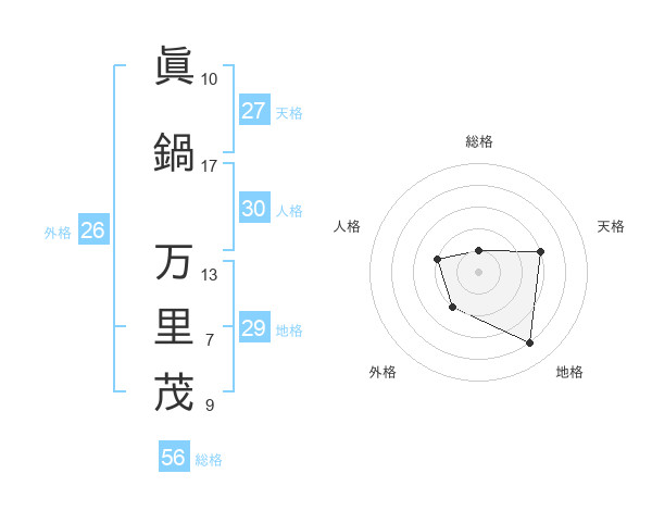 眞鍋 万里茂さんの名前の鑑定結果は!