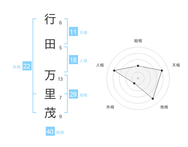 行田 万里茂さんを姓名の画数から五運を鑑定