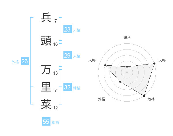 兵頭 万里菜さんを姓名の画数から五運を鑑定