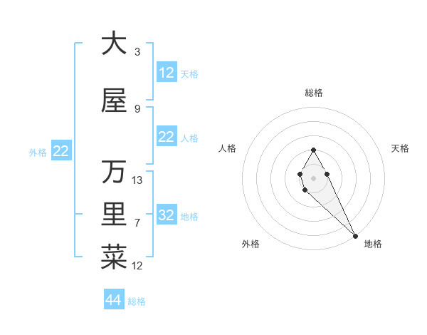 大屋 万里菜さんを姓名の画数から五運を鑑定