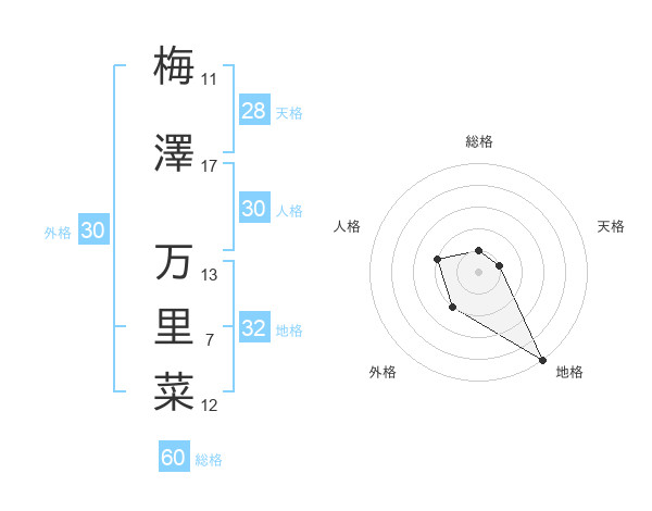 梅澤 万里菜さんの総格は60画の1点!