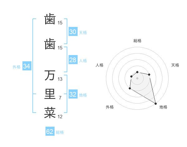 歯歯 万里菜さんの外格は34画の2点!