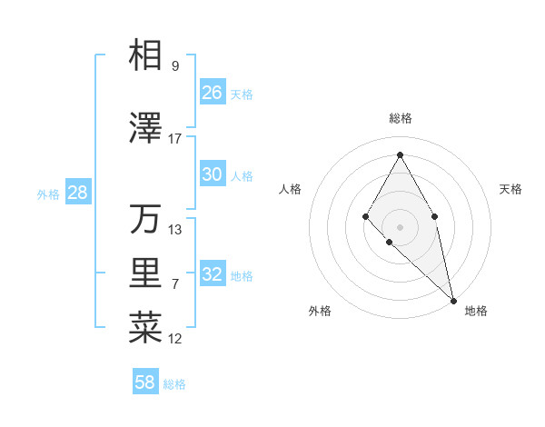 相澤 万里菜さんを姓名の画数から五運を鑑定