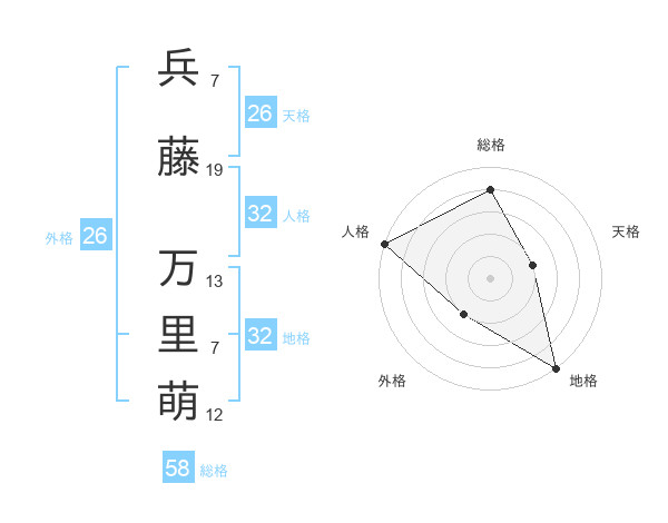 兵藤 万里萌さんを姓名の画数から五運を鑑定