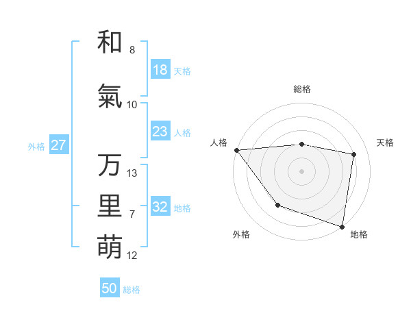 和氣 万里萌さんを姓名の画数から五運を鑑定
