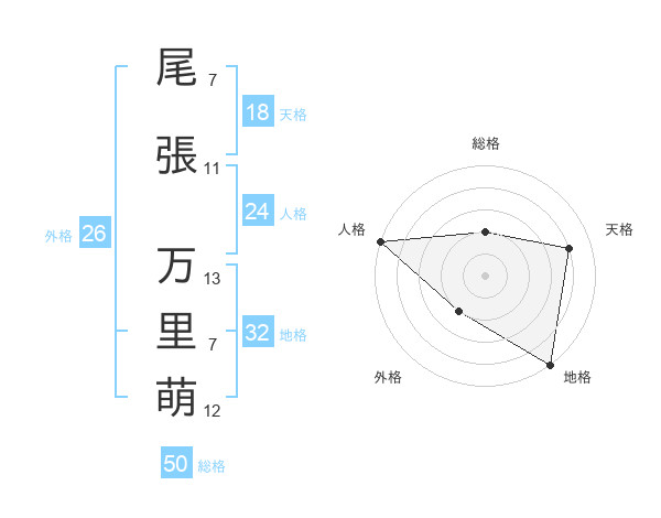尾張 万里萌さんの総格は50画の2点!