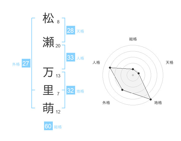 松瀬 万里萌さんの総格は60画の1点!