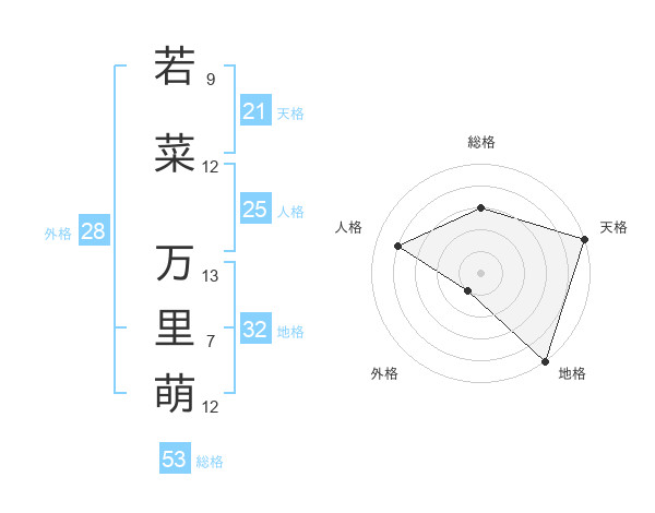 若菜 万里萌さんの天格は21画の5点!