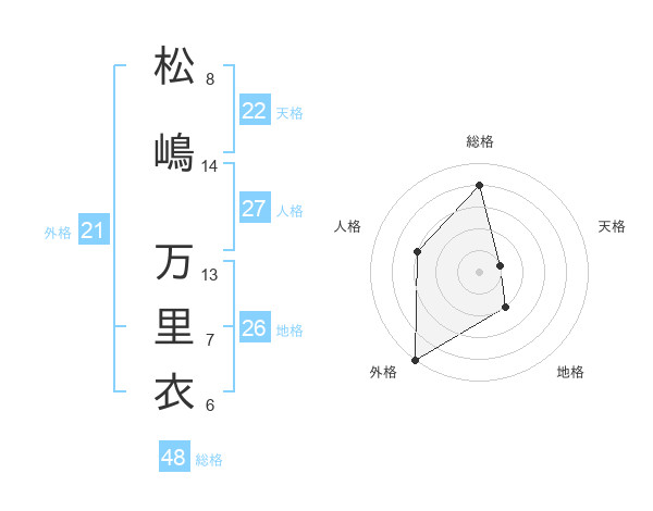 松嶋 万里衣さんを姓名の画数から五運を鑑定