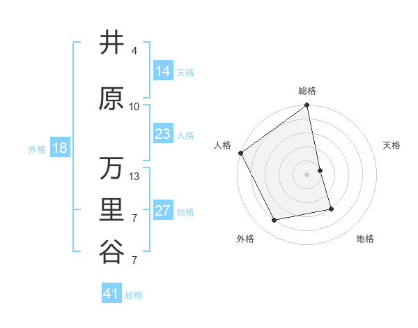井原 万里谷さんを姓名の画数から五運を鑑定