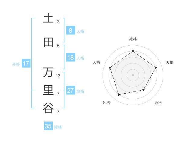 土田 万里谷さんを姓名の画数から五運を鑑定
