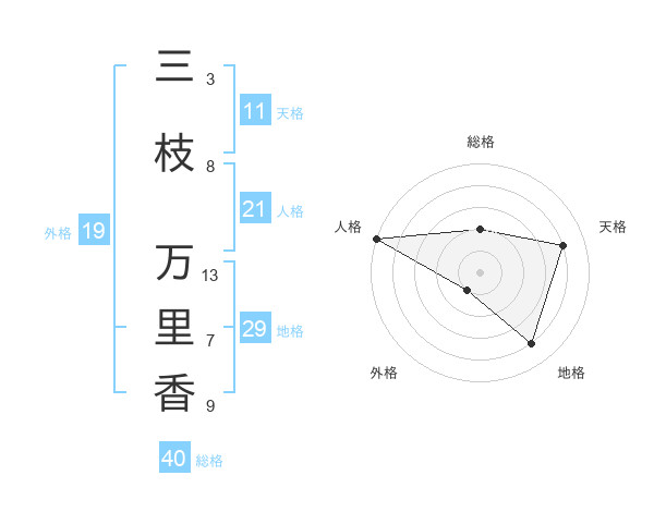 三枝 万里香さんを姓名の画数から五運を鑑定