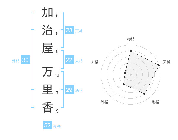 加治屋 万里香さんを姓名の画数から五運を鑑定