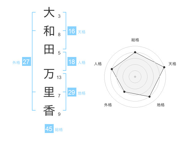 大和田 万里香さんを姓名の画数から五運を鑑定