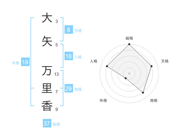 大矢 万里香さんを姓名の画数から五運を鑑定