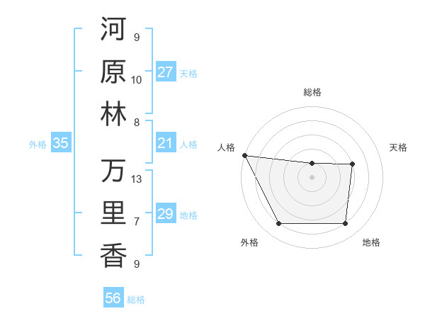 河原林 万里香さんを姓名の画数から五運を鑑定