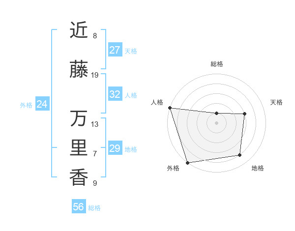 近藤 万里香さんの外格は24画の5点!