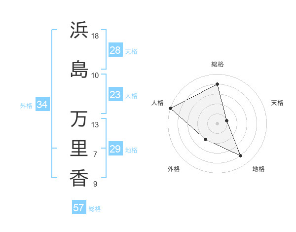浜島 万里香さんを姓名の画数から五運を鑑定