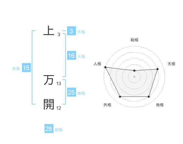 上 万開さんの総格は28画の1点!