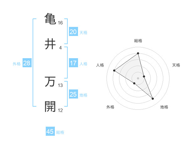 亀井 万開さんの総格は45画の4点!