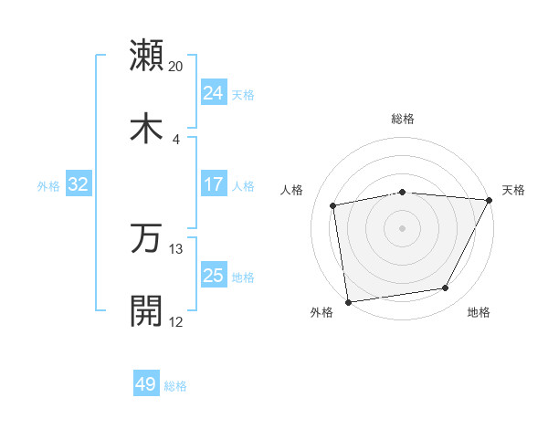 瀬木 万開さんを姓名の画数から五運を鑑定