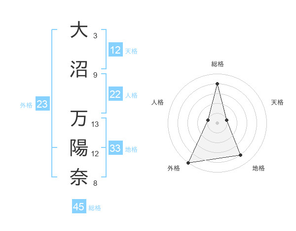 大沼 万陽奈さんを姓名の画数から五運を鑑定
