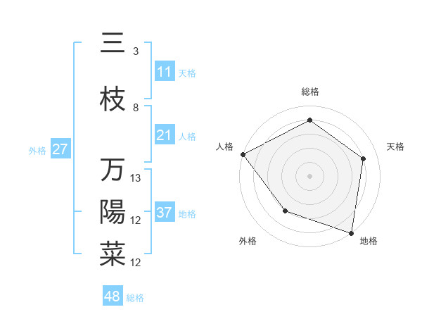三枝 万陽菜さんを姓名の画数から五運を鑑定