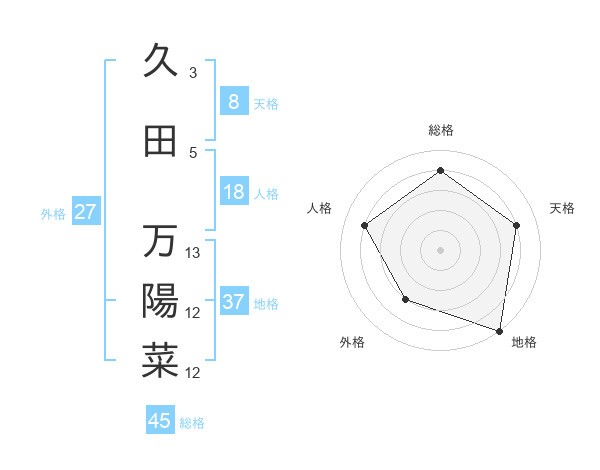 久田 万陽菜さんを姓名の画数から五運を鑑定
