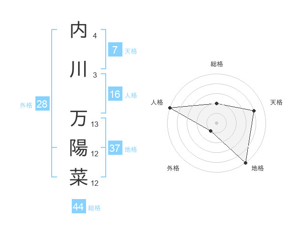 内川 万陽菜さんを姓名の画数から五運を鑑定