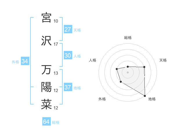 宮沢 万陽菜さんの地格は37画の5点