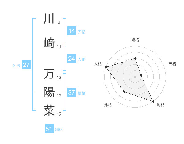 川﨑 万陽菜さんを姓名の画数から五運を鑑定
