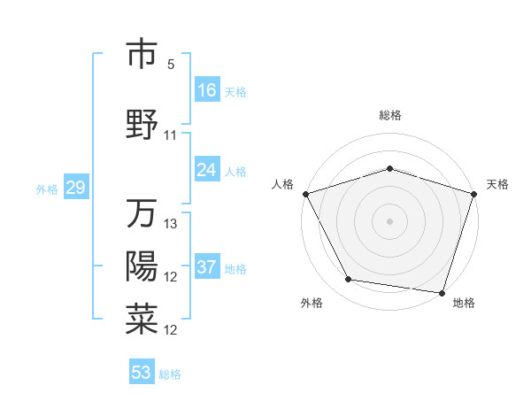 市野 万陽菜さんを姓名の画数から五運を鑑定
