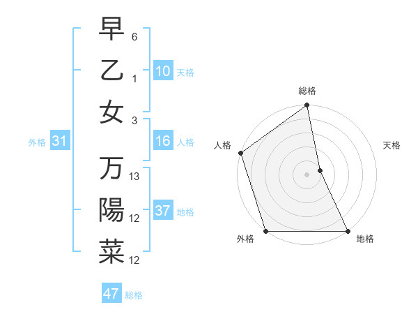早乙女 万陽菜さんの総格は47画の5点!